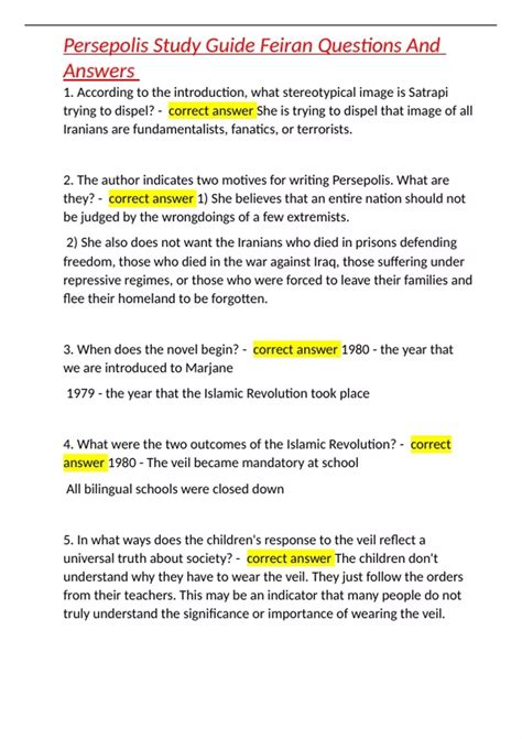 Download online Persepolis study guide questions and answers Kindle Editon ManyBooks